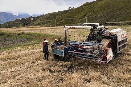 每年9月初,都是甘孜縣青稞收獲的季節(jié)。今年的秋收季已經(jīng)開(kāi)始,甘孜縣甘孜鎮(zhèn)斯俄片區(qū)的村民正忙著收割青稞。如今的雪域高原,農(nóng)業(yè)生產(chǎn)已經(jīng)基本告別人力耕作時(shí)代,實(shí)現(xiàn)了機(jī)械化耕作。今年甘孜縣的青稞長(zhǎng)勢(shì)良好,有望成為又一個(gè)豐收年。