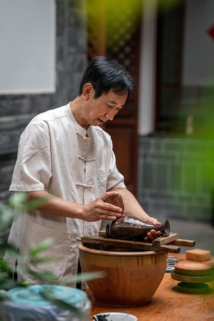 生活在云南省紅河哈尼族彝族自治州建水縣碗窯村的徐榮洪是當(dāng)?shù)匦旒腋G的第五代制陶藝人,也是非遺建水紫陶燒制技藝的傳承人。 泥料制備、拉坯造型、濕坯裝飾、雕刻填泥、高溫?zé)?、無(wú)釉磨光……要想做出精良的紫陶工藝品,每個(gè)流程都需要潛心鉆研。“制作技藝環(huán)環(huán)相扣,某一道工序出現(xiàn)紕漏,燒出來(lái)就是瑕疵品。” 徐榮洪拿起刻刀,對(duì)陶坯表面開始進(jìn)行雕刻。 今年57歲的徐榮洪小時(shí)候就跟著長(zhǎng)輩上山挖陶泥,多年來(lái)堅(jiān)持鉆研建水紫陶的制作技藝。 徐榮洪介紹說(shuō),作為紫陶藝人,以陶為紙,根據(jù)器型將不同的文化與藝術(shù)形式注入其中,使其具有無(wú)限活力。非遺文化閃爍著人類智慧的光芒,也承載著人們心底的情思鄉(xiāng)愁。