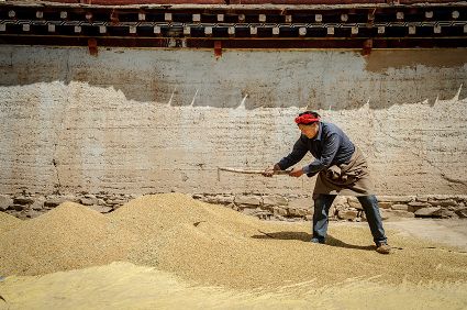 近日來(lái),我州等地天氣情況轉(zhuǎn)好,當(dāng)?shù)夭刈逋プ∮欣r(nóng)時(shí),利用大型農(nóng)機(jī)和人力搶收青稞。據(jù)了解,川藏公路國(guó)道317線甘孜段(爐霍至馬尼干戈段)2013年改造完成后,當(dāng)?shù)厝罕娍梢酝ㄟ^(guò)317線方便地運(yùn)輸糧食和大型農(nóng)機(jī)具,農(nóng)業(yè)生產(chǎn)條件得到很大改善。(新華社記者 胡超攝)