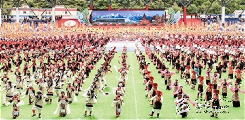 激情昂揚(yáng)的舞蹈,悅耳動聽的歌聲,觀眾喝彩聲不斷,康定體育場匯聚成一片歡樂的海洋。
