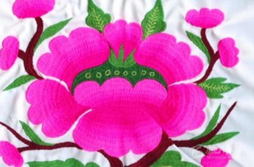 在魚通,刺繡以花朵為主。會(huì)繡花的女人,被稱為“花匠”?!靶』ń场眰儚氖鄽q就開始接觸刺繡,通過年長(zhǎng)者口傳身授,自學(xué)的方式成為一代繡女。稚嫩的雙手,再經(jīng)過時(shí)間的洗禮,刺繡的技巧早已爛熟于心,在心的指引下,穿針引線,針尖如麥芒,各色陪底線來回,穿梭于布料的經(jīng)緯之間。買回青布,從下手的第一針開始,整幅圖的構(gòu)架便了然于心,各式花朵圖案成竹在胸,線條在暗自游走,勾勒越來越清晰。每一次的飛針走線,是婦人手上的一針針,一線線,都在為作品最后的完美收關(guān),錦上添花,做著必不可少的鋪墊。
