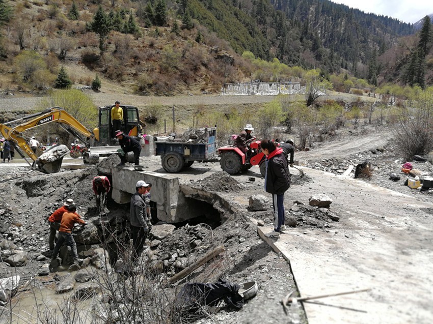 或許是在雨季,泥石流將通村的路都阻斷了,我們和大家一起拿著工具,搶修通村路的時(shí)候;