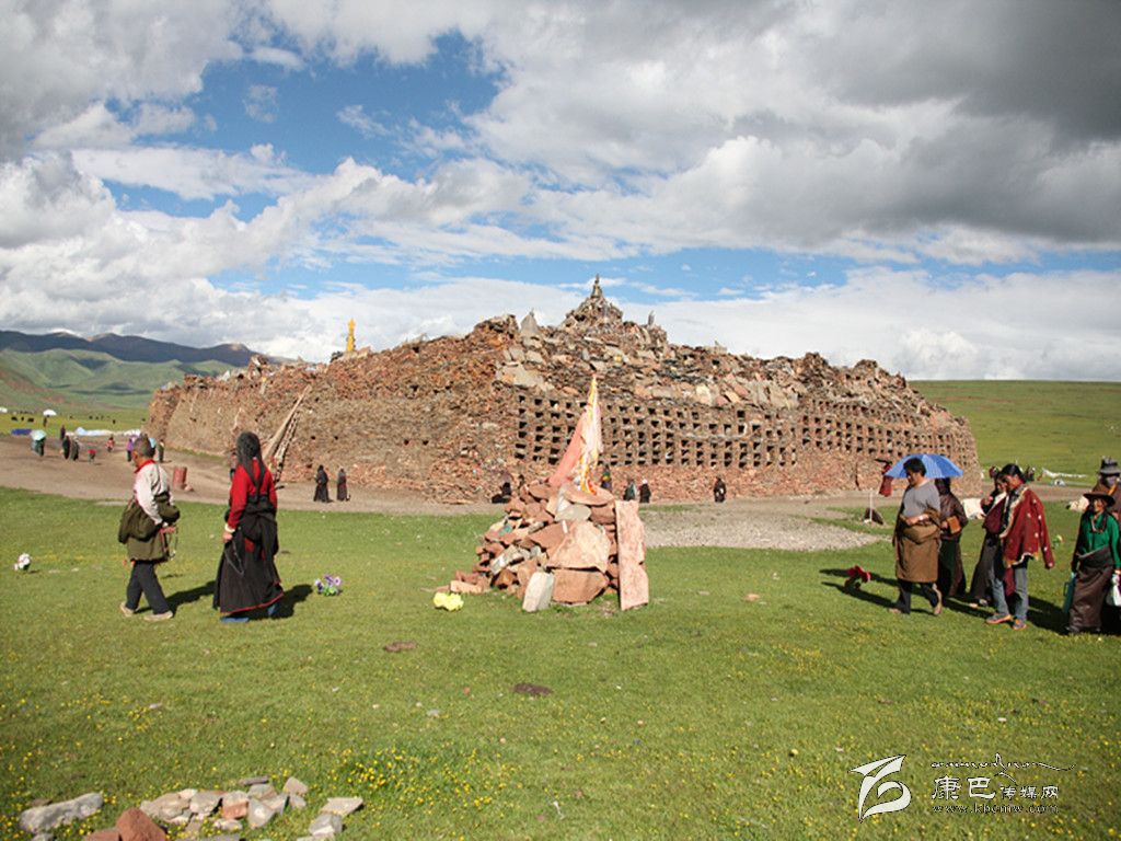 吃完午飯后,大家便走向松格瑪尼石經(jīng)城。短暫的煨桑儀式結(jié)束后,一匹匹高頭大馬繞著石經(jīng)城飛跑,隆達(dá)撒向半空,飄散在雨后的草原上。隨后,專家們走進(jìn)石經(jīng)城,挨個(gè)頂禮了一處石刻造像,據(jù)說(shuō),這一處石刻造像具有加持力,十分靈驗(yàn)??脊艑<覀兒陀浾呃@松格瑪尼石經(jīng)城走完一圈后,便離開(kāi),前往須巴神山。