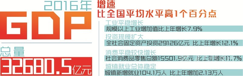 本網(wǎng)訊(記者 陳巖 梁現(xiàn)瑞 李龍?。?/span>1月22日,省政府新聞辦召開新聞發(fā)布會,發(fā)布2016年經(jīng)濟數(shù)據(jù)。經(jīng)國家統(tǒng)計局審定,2016年全省實現(xiàn)地區(qū)生產(chǎn)總值(GDP)32680.5億元,按可比價格計算比上年增長7.7%,增速比全國平均水平高1個百分點。全省經(jīng)濟運行呈現(xiàn)總體穩(wěn)定、穩(wěn)中有進、穩(wěn)中有好的發(fā)展態(tài)勢,實現(xiàn)“十三五”良好開局。