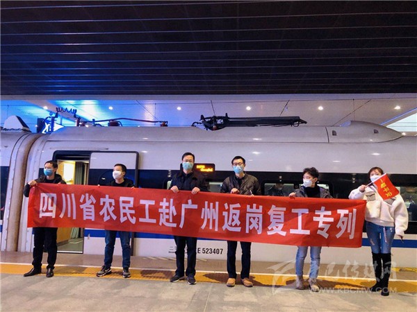 2月20日上午11:30,滿載著917名川籍農(nóng)民工的D4755次返崗專列,從成都東出發(fā)一路駛往廣州南。這是今年春節(jié)后我省首趟開往廣東省的農(nóng)民工返崗專列,也是我省與廣東在新冠病毒疫情期間勞務(wù)協(xié)作共識達(dá)成后,開行的首趟農(nóng)民工返崗專列。此次專列開行,極大滿足了疫情期間我省農(nóng)民工外出務(wù)工需求,同時(shí)也為廣東省企業(yè)復(fù)工復(fù)產(chǎn)提供了勞動力支持。此趟專列票務(wù)費(fèi)用由廣東省人社廳承擔(dān),農(nóng)民工免費(fèi)乘坐。
