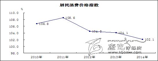 物價(jià)運(yùn)行基本穩(wěn)定,漲幅高于全國全省。2014年12月CPI同比上漲1.7%,全年消費(fèi)價(jià)格總水平比上年上漲2.1%,漲幅為7年來新低,比全國高0.1個(gè)百分點(diǎn)、比全省高0.5個(gè)百分點(diǎn)。