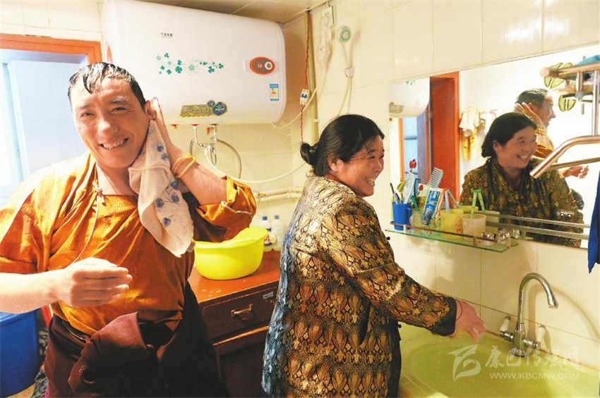 左圖:理塘縣高城鎮(zhèn)長(zhǎng)壽街的牧民丹珍(右)和丈夫洛絨鄧珠在家里用上了干凈的自來水。