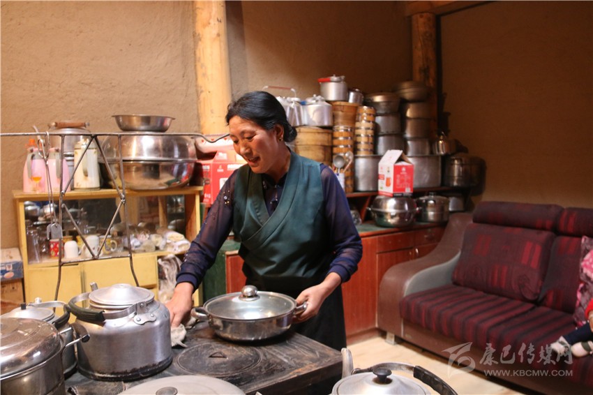 走進(jìn)廚房,鍋碗瓢盆、鋼爐、茶具、地板纖塵不染,客廳里收拾得整潔有序,干凈如新。在記者的要求下,扎西啟珍 坐在花叢中,笑臉如花。因為家里日子好過了,同時,家里也需要人手,她就還俗了。