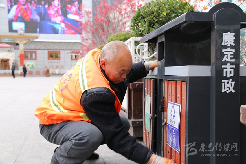康定的街頭,在匆忙的人群中,那些身著橘黃色保潔服的環(huán)衛(wèi)工人隨處可見。在溜溜城步行街,他們揮動著掃帚,掃起果皮、紙屑;在情歌廣場,他們拿著抹布一遍一遍地擦拭著垃圾桶;在彩虹橋垃圾收集站點(diǎn),他們將垃圾桶里的垃圾裝上壓縮車,運(yùn)往垃圾處理廠……