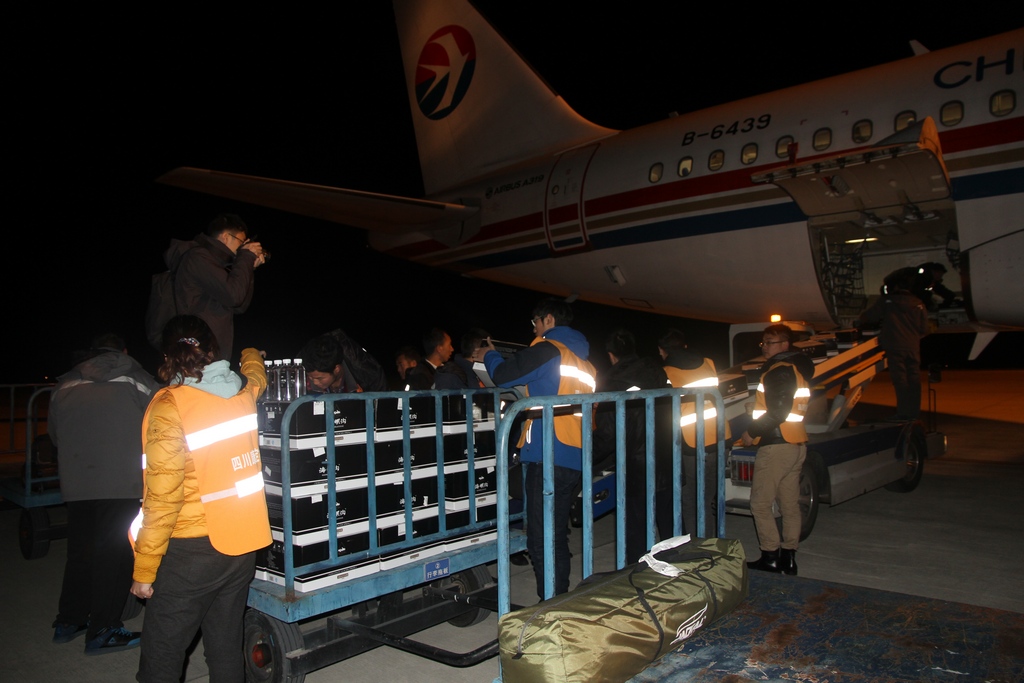 為了盡快給災(zāi)區(qū)人民送去切實(shí)需要的救援物資,解決他們的臨時(shí)住所和安全飲水等問(wèn)題,同時(shí)也是安撫災(zāi)區(qū)人民的情緒。四川康定機(jī)場(chǎng)集團(tuán)公司董事長(zhǎng)譚亨帶領(lǐng)機(jī)場(chǎng)救援工作組在23日6點(diǎn)28分航班抵達(dá)后,以最快速度裝載好所有物資,全速趕往震中塔公鄉(xiāng)。