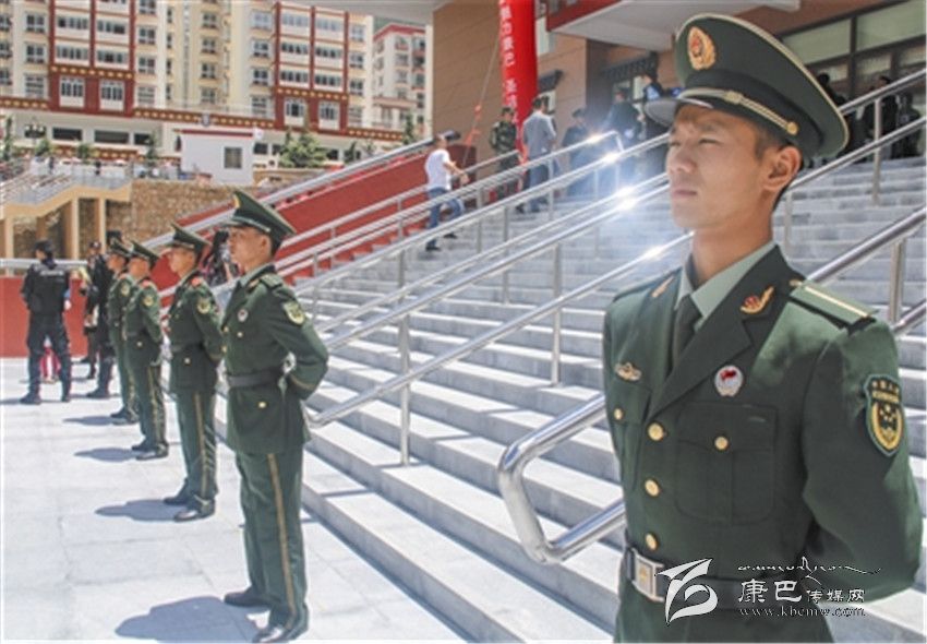 8月10日下午,記者來到康定市新區(qū)民族體育館,在烈日下,公安干警和武警官兵筆挺站立,守護(hù)著演職人員和觀眾的安全。