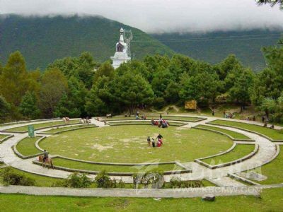 “跑馬溜溜的山上,一朵溜溜的云喲?!币磺刀ㄇ楦枋沟门荞R山揚(yáng)名世界。跑馬山,藏名:拉姆則,意為:仙女山。因山頂有湖泊五色海,故又名:五色海子山。跑馬山主要景觀為:五色海、吉祥禪院、跑馬坪、浴佛池等。為了紀(jì)念佛祖釋迦牟尼的誕辰日,每年的陰歷四月初八,當(dāng)?shù)厝罕姸紩?huì)在跑馬山舉行盛大的紀(jì)念活動(dòng),當(dāng)?shù)胤Q(chēng)之為“四月八轉(zhuǎn)山會(huì)”,并同時(shí)在跑馬山上舉行賽馬活動(dòng),熱鬧非凡。